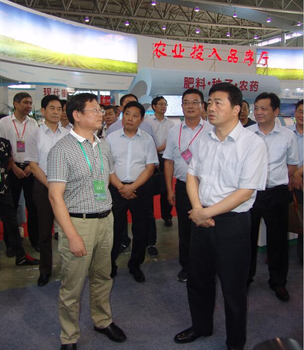 9月14日下午預展期間,安徽省政府副省長方春明一行巡視了荃銀高科展廳,并對荃銀參展品種予以好評和肯定。
