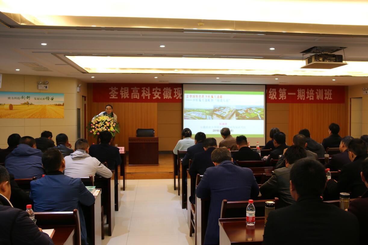 ? ? 本次培訓班由安徽省農(nóng)委主辦、荃銀高科承辦,集中培訓時間為3月18日至22日,主要培訓課程有水稻規(guī)模生產(chǎn)管理技術(shù)、水稻育種及品種選用、社會化服務組織對接、小麥規(guī)模生產(chǎn)管理技術(shù)、新型職業(yè)農(nóng)民職業(yè)素養(yǎng)、現(xiàn)代農(nóng)業(yè)創(chuàng)業(yè)等。3月18日上午,安徽農(nóng)業(yè)大學新農(nóng)村發(fā)展研究院張承祥教授為學員開講“鄉(xiāng)村振興戰(zhàn)略”主題課。在學習培訓期間,除了理論課程,農(nóng)場主學員們將于3月20日赴廬江郭河現(xiàn)代農(nóng)業(yè)科技示范園進行參觀學習,開展實踐教學活動。