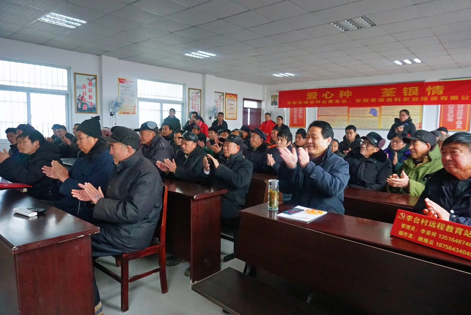 ??? 臘月的古城壽縣,寒風(fēng)凜冽,壽縣迎河鎮(zhèn)李臺村村委會的會議室卻溫暖如春。1月12日,安徽荃銀高科農(nóng)投有限公司攜手安徽張海銀種業(yè)基金會及壽縣金豐公社有限公司走進(jìn)壽縣迎河鎮(zhèn)開展“穗悅”精準(zhǔn)扶貧項目活動。為當(dāng)?shù)?0戶建檔立卡的貧困戶每戶送去優(yōu)質(zhì)水稻種子和化肥。壽縣扶貧辦副主任徐中貴、縣殘聯(lián)副理事長陳慶華,壽縣迎河鎮(zhèn)黨委書記李景練、副鎮(zhèn)長戴紹江,基金會秘書長張彤、安徽荃銀高科農(nóng)投有限公司總經(jīng)理助理鄭運衛(wèi)、金豐公社總經(jīng)理滕玉磊等參加了活動。