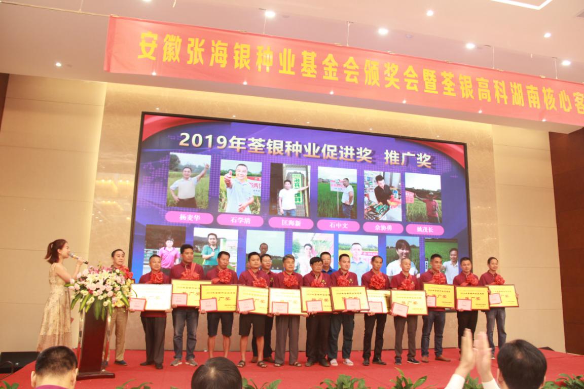 安徽荃銀高科湖南營(yíng)銷公司核心客戶研討峰會(huì)暨張海銀種業(yè)基金會(huì)荃銀種業(yè)促進(jìn)獎(jiǎng)?lì)C獎(jiǎng)儀式召開(kāi)