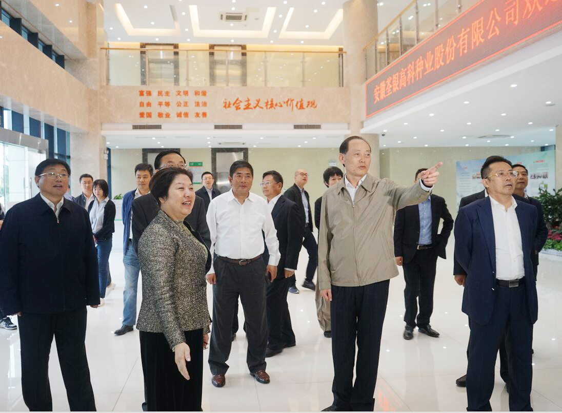 ??? 2019年10月11日下午,農(nóng)業(yè)農(nóng)村部黨組副書記、副部長余欣榮蒞臨荃銀高科考察調(diào)研,農(nóng)業(yè)農(nóng)村部鄉(xiāng)村產(chǎn)業(yè)發(fā)展司司長曾衍德、辦公廳副主任寧啟文參加調(diào)研。安徽省政府副秘書長張冬云,省農(nóng)業(yè)農(nóng)村廳黨組成員、副廳長王華,合肥市副市長王民生等領(lǐng)導(dǎo)陪同考察。荃銀高科副董事長、總經(jīng)理張琴,常務(wù)副總經(jīng)理王玉林,副總經(jīng)理、首席技術(shù)官張從合,副總經(jīng)理朱全貴、江三橋等熱情接待了余欣榮副部長一行。