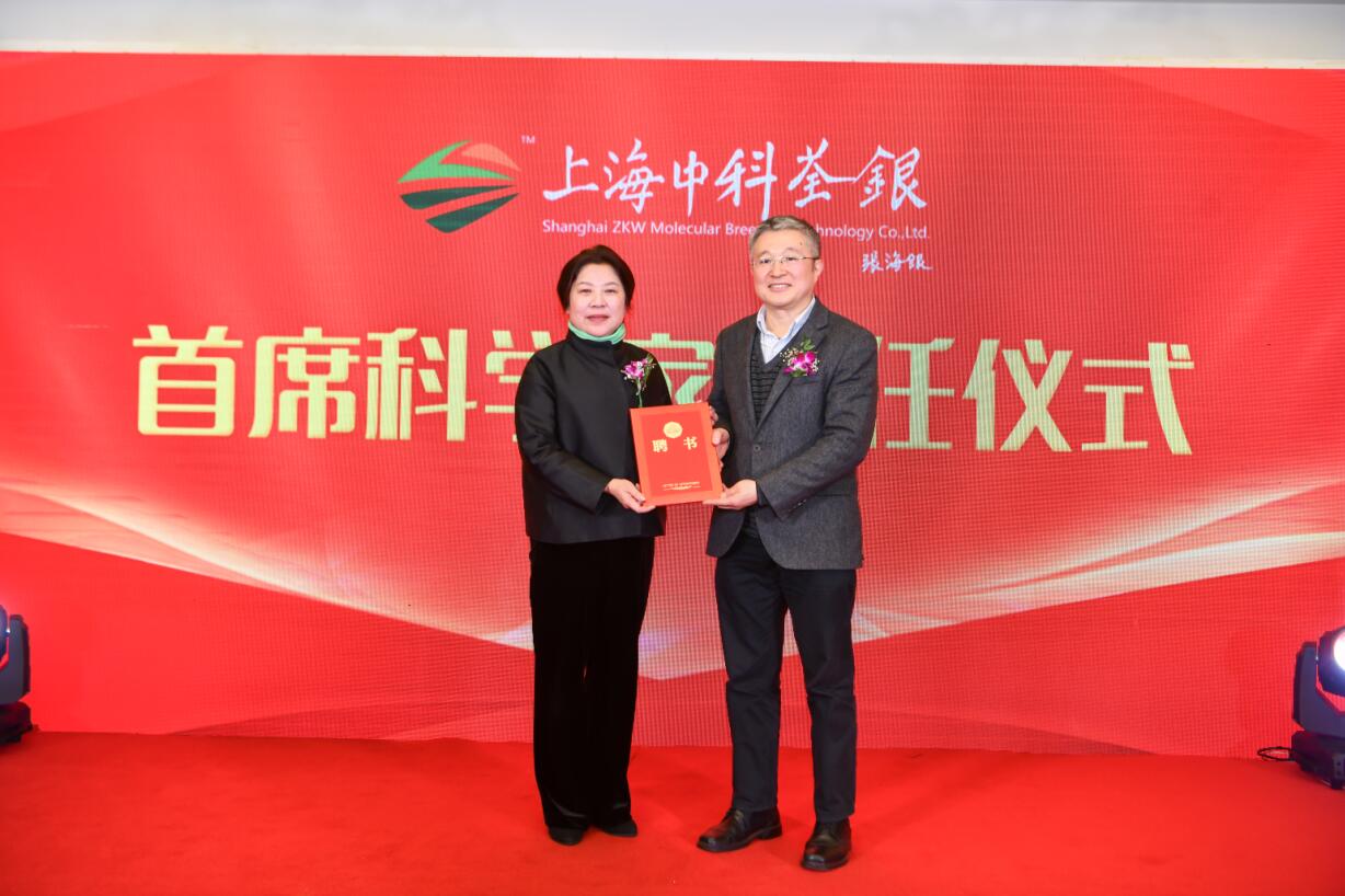 ? ? ?韓斌院士在致辭中首先向關(guān)心支持上海中科荃銀的各位領導、嘉賓表示感謝。他表示,基礎研究與應用研究結(jié)合,一定能為育種創(chuàng)新開辟出新路子。上海中科荃銀的成立既有挑戰(zhàn),更是機遇,上海中科荃銀各團隊將珍惜機遇,努力為中國種業(yè)技術(shù)創(chuàng)新與技術(shù)進步作貢獻!會上舉行了上海中科荃銀首席科學家聘任儀式,上海中科荃銀董事長張琴女士為韓斌院士頒發(fā)聘任證書。